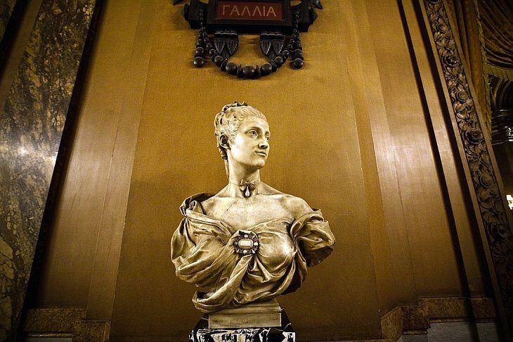 Фойе с обратной стороны. Слева установлен бюст архитектора Гарнье работы скульптора Жана-Батиста Карпо: