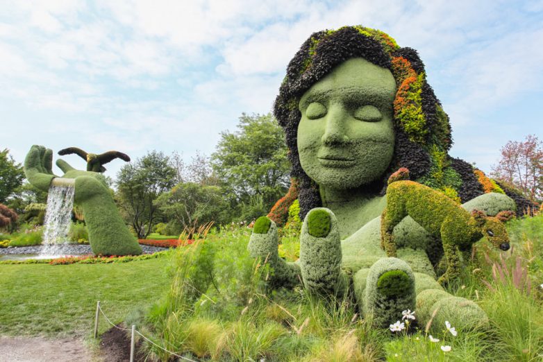 Кстати, взгляните на канадский оригинал, подавший идею оформителям «Московской весны»: это живая садовая композиция «Мать Земля», представленная в 2013 году на престижном конкурсе мастеров такого жанра в Ботаническому саду Монреаля.