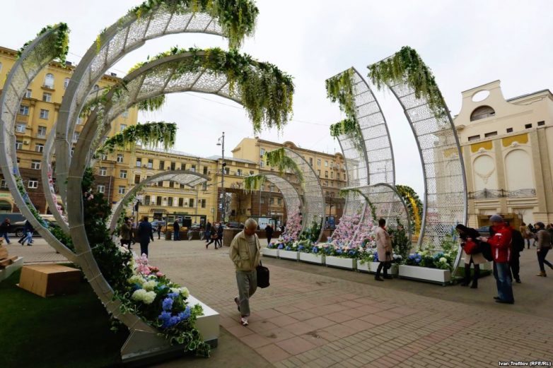 Что ж, вполне логичное дизайнерское решение, учитывая, что компания «Московский сувенир плюс», три года подряд получавшая тендеры на украшение столицы к весне, специализируется среди прочего похоронных принадлежностях.