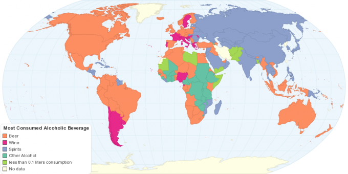 Какого алкоголя больше всего выпивается в каждой стране