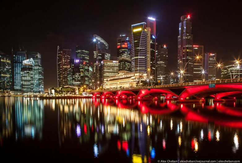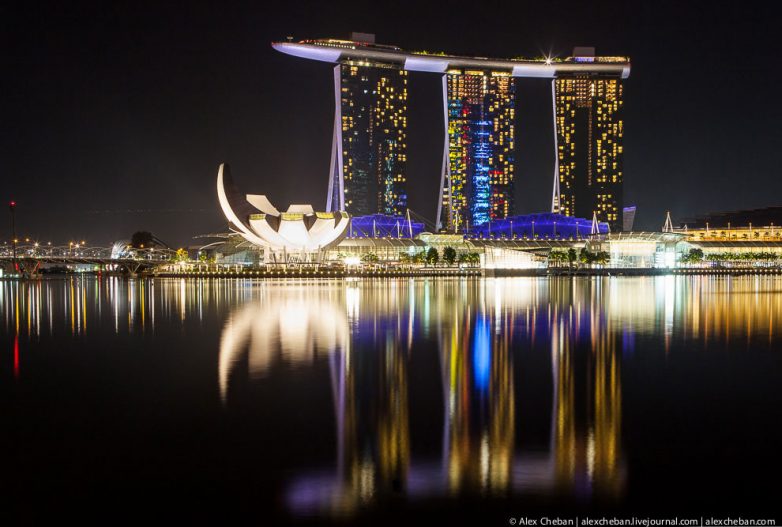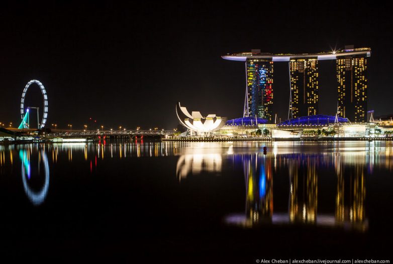 Сегодня посмотрим на ночной Сингапур в перспективе и отражениях.