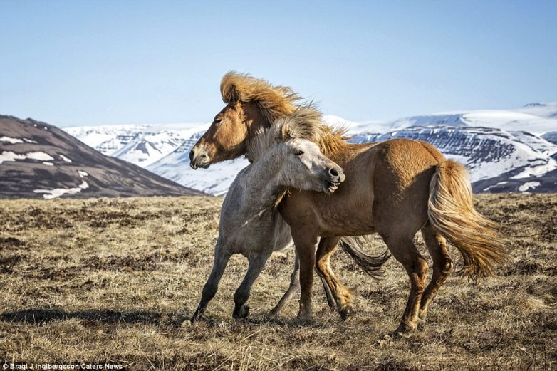 Исландец Браги Ингибергссон начал фотографировать лошадей ещё в ранней юности. По его словам, чтобы поймать в кадр улыбку лошади, нужно запастись недюжинным терпением и положиться на удачу, ведь в игривом настроении они бывают не всегда. Лошади, которых вы видите на этих снимках, живут в горах Исландии, и они свободны как ветер.