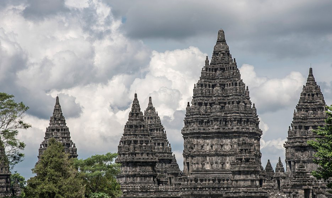 Прамбанан состоит из трех основных зданий (для Вишну, Брахма и Шивы) и сотни меньших святынь, каждая из которых доносит священные индуистские тексты затейливой резьбой.