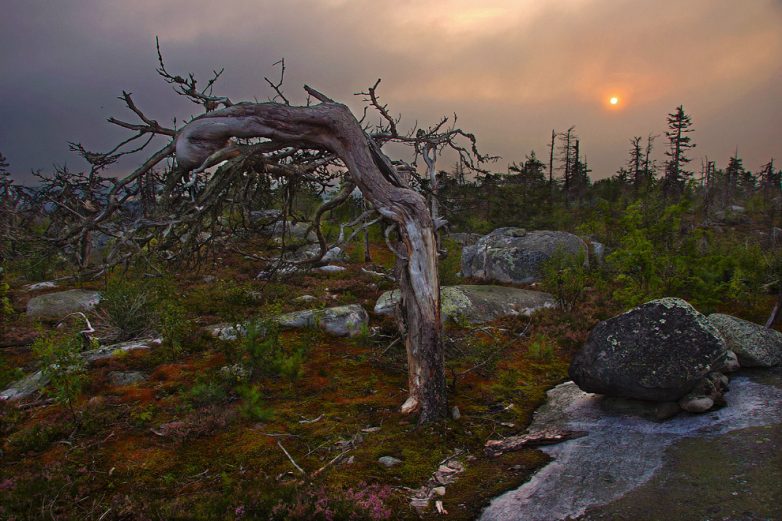 Гора Воттоваара в Карелии имеет высоту 417 метров и знаменита своими футуристическими пейзажами с камнями, скалами и мертвыми деревьями причудливой формы.