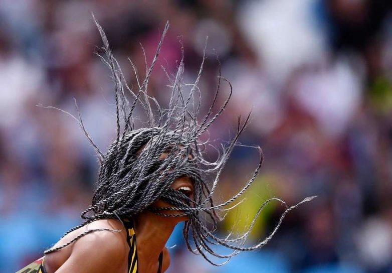 Бельгийская легкоатлетка Нафиссату Тиам выступает на соревновании по метанию копья в семиборье на Чемпионате мира по лёгкой атлетике 2017 в Лондоне, Великобритания.