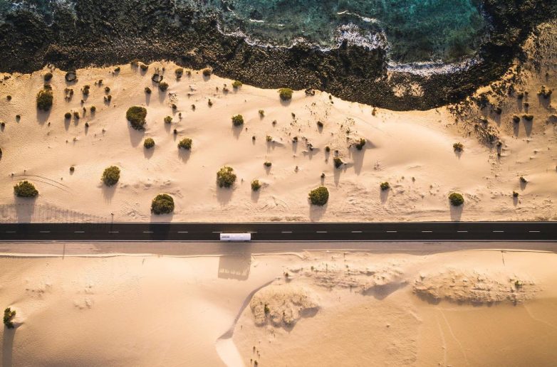 Беспилотные летательные аппараты стали регулярно использоваться для создания красочных снимков. Берег моря, скалистый обрыв и занесенная песками дорога… Каждый кадр — вершина минимализма. Оказывается, все как у Есенина — лицом к лицу лица действительно не увидать. Нужно взмыть ввысь, чтобы понять эту удивительную красоту ландшафта нашей планеты, на которую мы каждый день ступаем ногами.