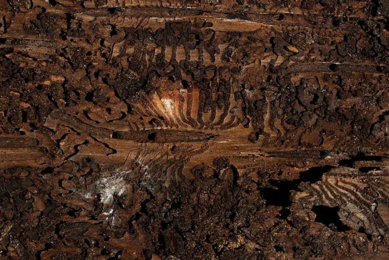 Дерево, пораженное большим еловым короедом, в Беловежской пуще в Польше.
