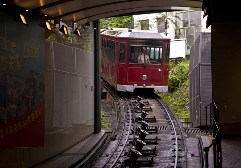 Фуникулёр, доставляющий туристов на гору Пик Виктория, 28 мая 2012 года.