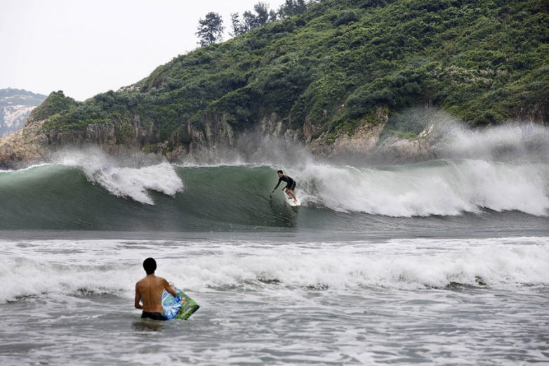 Сёрферы ловят большие волны у берегов острова Гонконг, вызванные приближением тайфуна Usagi, 22 сентября 2013 года.