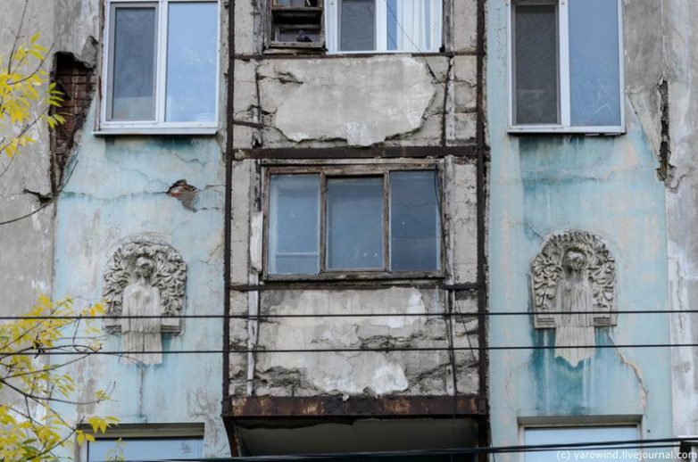 Старая Самара тиха и патриархальна. Но неопрятна. Облупленные дома – это не исключение, а обыденность. По крайней мере, так было на лето 2015 г. Кусок бетона с такого вот балкона может упасть вам на голову в любой момент.