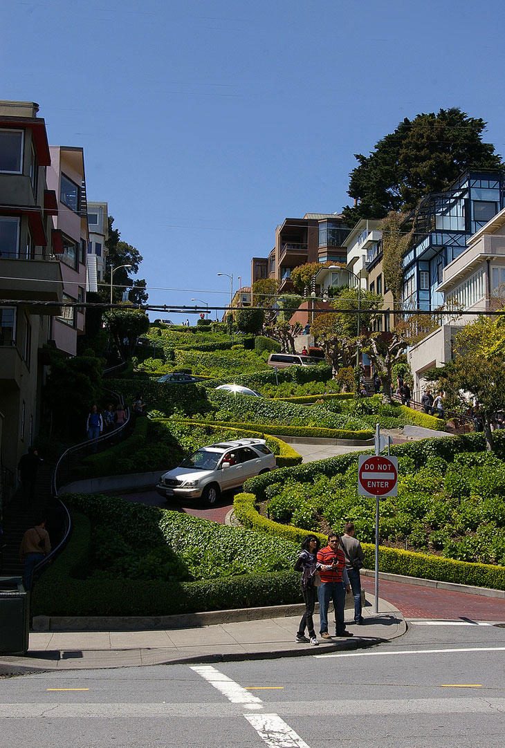 На 400 метрах улица Ломбард-стрит имеет одностороннее движение, целых 8 крутых поворотов и ограничение скорости в 8 км/ч.
