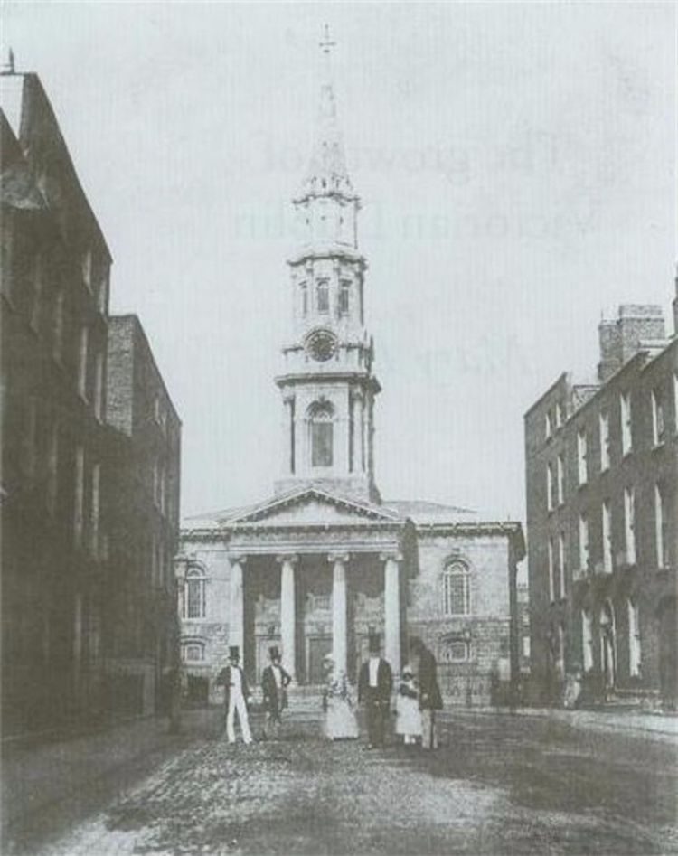 На первой фотографии Дублина 1848 года группа людей позирует перед церковью Святого Георгия. Сегодня в ней располагаются офисы.