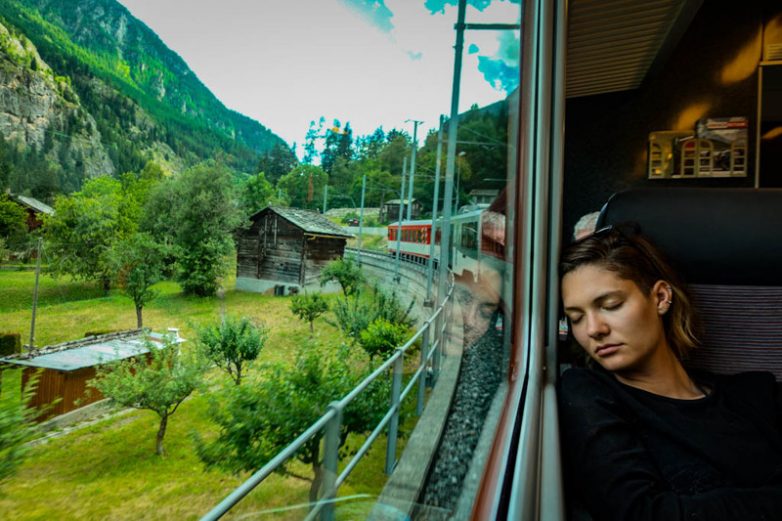 Самая главная хитрость в швейцарских поездах – сесть у окна или в начале или в конце поезда. На поворотах вы сможете сфотографировать не только красивый пейзаж за окном, но и хвост/голову вашего состава, который будет прекрасно гармонировать с окружающей зеленью.