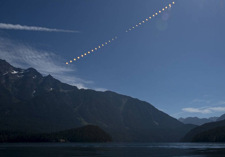 Этот эффект можно было наблюдать на 100-километровой полосе страны — так называемой линии полного затмения, в 14 штатах от западного до восточного побережья. Остальные американцы видели затмение лишь частично, если позволяла погода. Мы собрали фотографии природного явления.