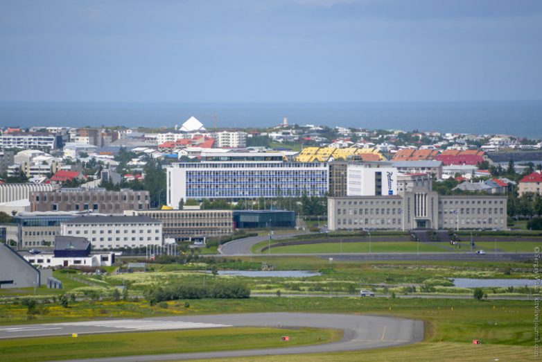 Давайте вернемся к обзорной площадке здания Perlan. Вид на городской аэропорт местных линий (RKV). Отсюда регулярно летают самолеты по острову и в соседнюю Гренландию.