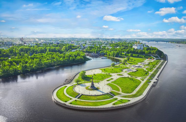 Одна из главных достопримечательностей города — Стрелка, территория на слиянии двух рек, Волги и Которосли. Именно здесь был основан Ярославль, о чем напоминает установленный к тысячелетнему юбилею города памятник. От открывающейся с высокого берега Стрелки панорамы захватывает дух, а по набережной Волги протянулся целый ансамбль церквей. Стоит посмотреть и на Арсенальную башню — сохранившуюся часть старой крепости, где раньше хранилось оружие, а также осмотреть богатейшую коллекцию икон в Митрополичьих палатах. Последние были построены в XVII веке в качестве парадной резиденции митрополита Ионы Сысоевича — главы православной церкви Ярославля. Заканчивают осмотр Стрелки туристы обычно отдыхом в открытой шестиколонной Волжской беседке — это еще один символ Ярославля.