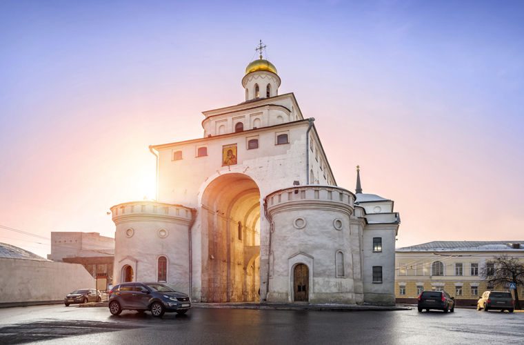 Золотые ворота во Владимире считались парадным входом в город в XII–XIII веках, служили для встречи почетных гостей. Их дубовые створы были покрыты листами золоченой меди и ярко блестели на солнце — отсюда и такое название. Белокаменная триумфальная арка, достигавшая высоты 14 м, придавала сооружению еще более величественный вид.
