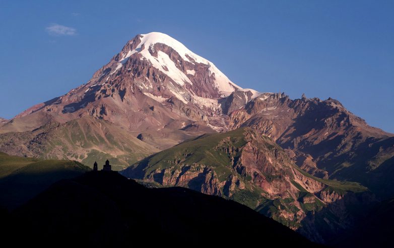 Троицкая церковь в Гергети. расположена на высоте 2170 м у подножья Казбека вдоль Военно-Грузинской дороги в грузинской деревне Гергети на правом берегу Чхери (приток Терека), прямо над посёлком Степанцминда. Построенная в XIV веке святыня является единственным крестово-купольным храмом в области Хеви. Подле храма сохранилась средневековая колокольня. (Фото Amos Chapple | Radio Free Europe | Radio Liberty):
