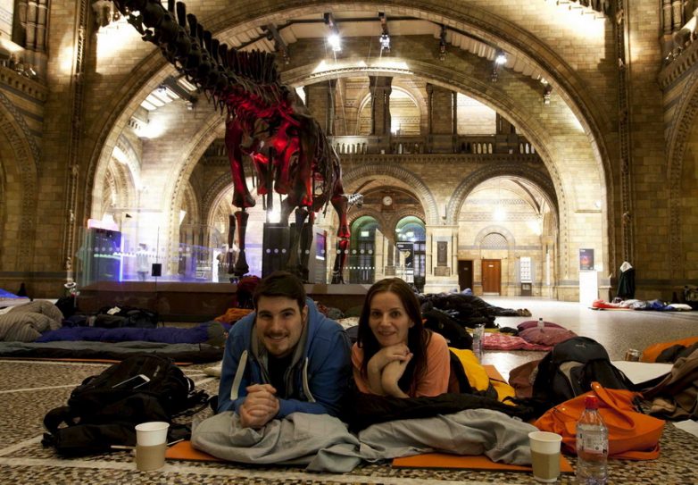Отныне каждый желающий может испытать на себе «ночь в музее». Лондонский музей естествознания проводит мероприятия Dino Snores с возможностью проснуться под скелетом диплодокуса. Отдельные мероприятия проводятся в течение всего года для взрослых и детей. Они включают в себя питание и всевозможные развлечения.