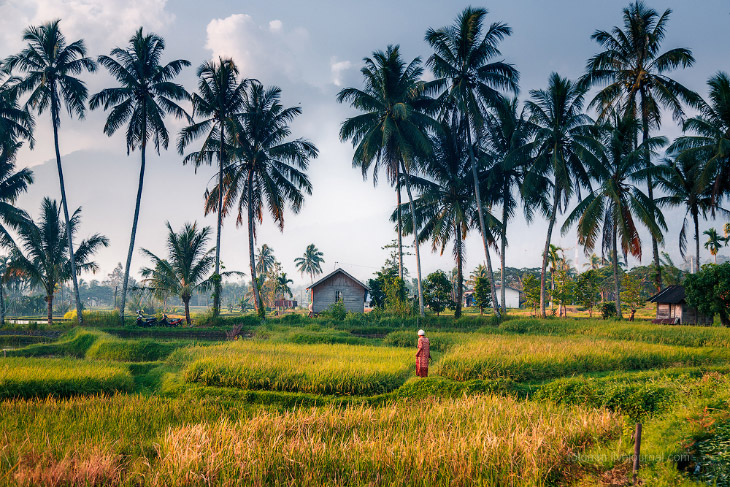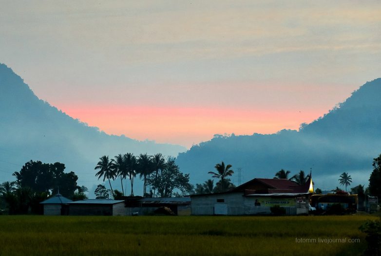 Рисовые террасы, высоченные пальмы, воздушная дымка, скрывающая горные вершины и маленькие деревушки на склонах — это берега озера Манинджао, остров Суматра, Индонезия. Рай на земле? Возможно…