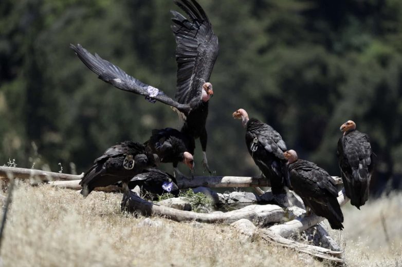Калифорнийские кондоры у водопоя в районе Биг-Сур в Калифорнии, США. Тридцать лет назад этот вид птиц оказался на грани вымирания, но благодаря программам по разведению в неволе численность популяции калифорнийских кондоров удалось восстановить.