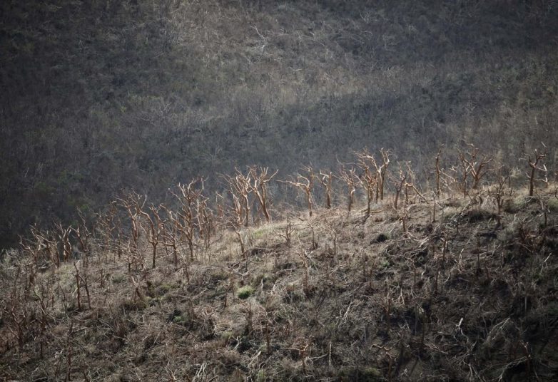 Голые деревья на острове Сент-Джон в Карибском море после урагана «Ирма».