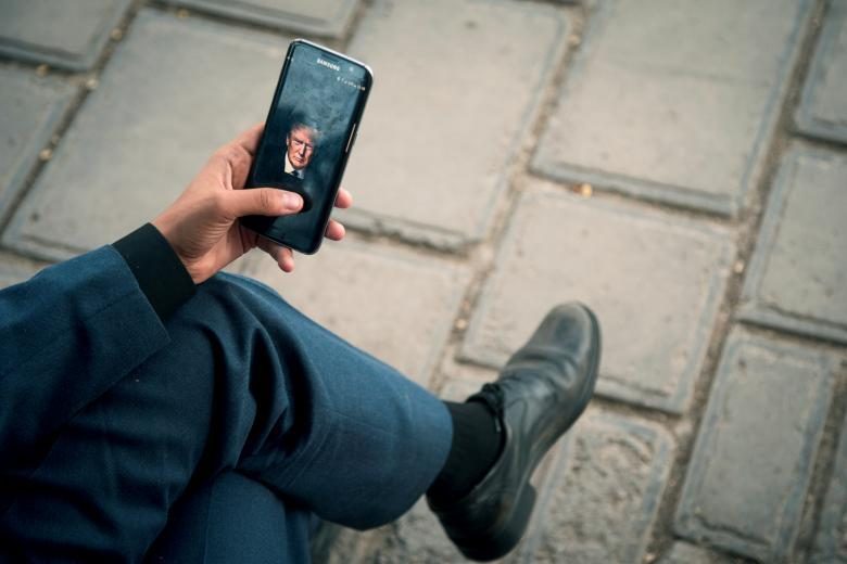 Мужчина показывает потрет президента США Дональда Трампа со своего телефона в Тегеране, Иран, 13 октября 2017 года.