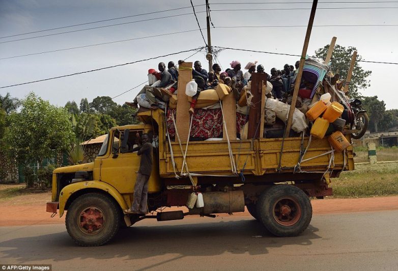 Люди бегут из города Дамара, который находится в 70-ти километрах к северу от Банги, после обострения конфликта в 2013 году.