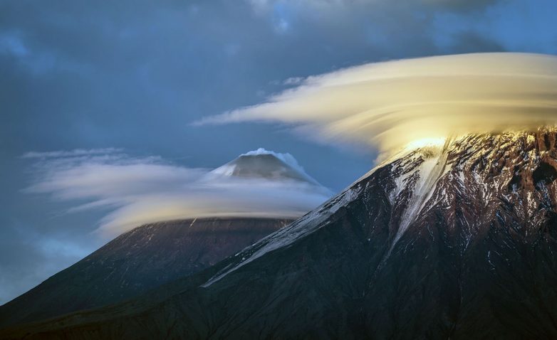 Вулканы можно увидеть в окружении линзовидных облаков, которые образуются в тропосфере. Своей формой эти облака напоминают неопознанные летающие объекты, кружащие возле вулканов.
