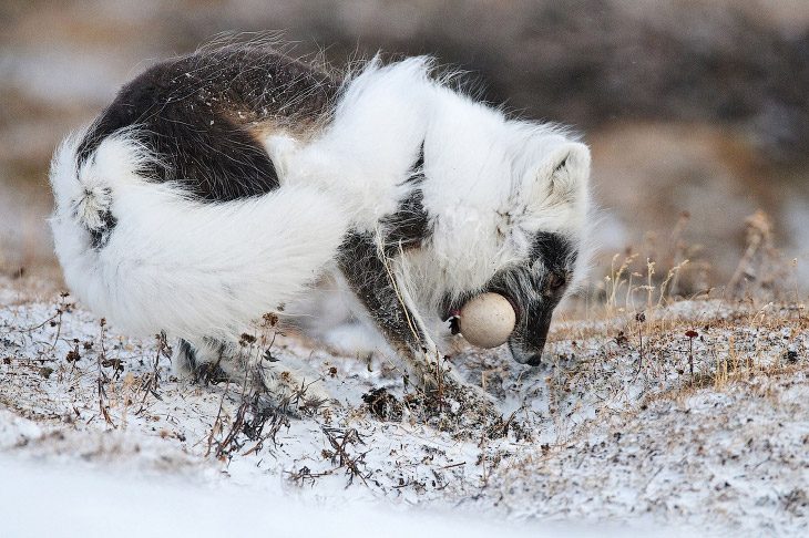 Песец утащил гусиное яйцо.