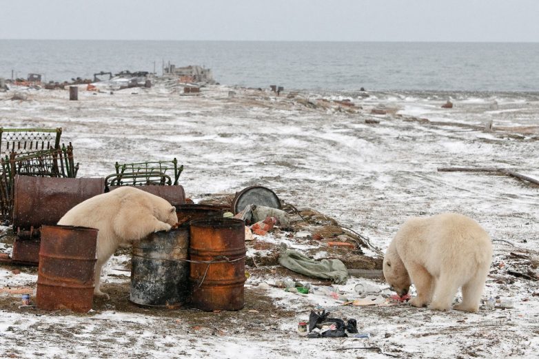 Медведи ищут в бочках что-нибудь съестное. (Фото Sergey Gorshkov | bioGraphic):