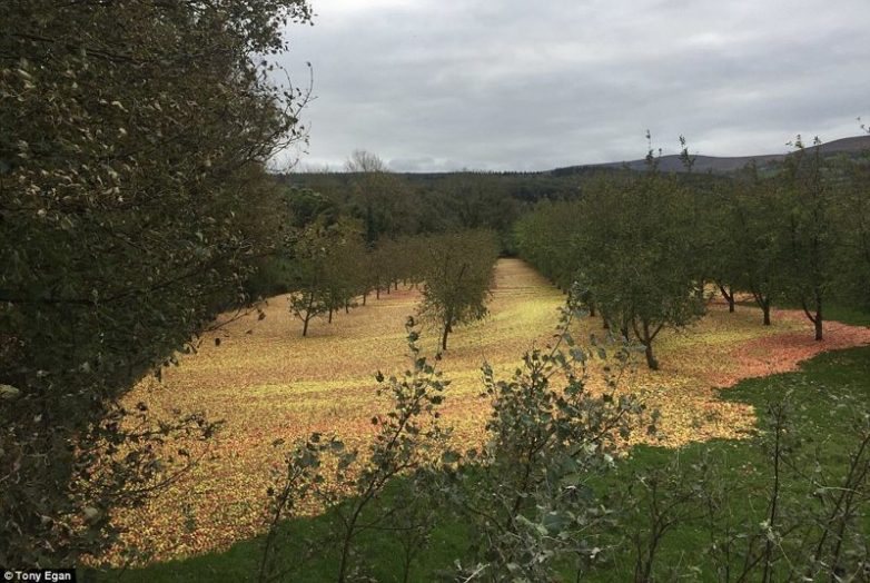 На снимке — яблоневый сад, фрукты из которого используются для приготовления сидра Bulmers. За одну ночь Офелия сорвала почти весь урожай и выстелила его ровным и аккуратным ковром. Когда стихия отбушевала, обеспокоенному взору фермеров открылась удивительная картина.