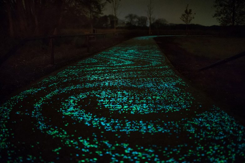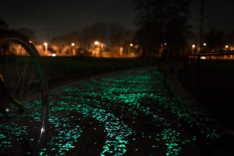 Талантливый дизайнер Даан Русегард из Голландии придумал и воплотил в жизнь волшебную велодорожку, которая светится ночью, помогает ночным путникам не сбиться с пути и в целом похожа на картину «Звездная ночь» Ван Гога.