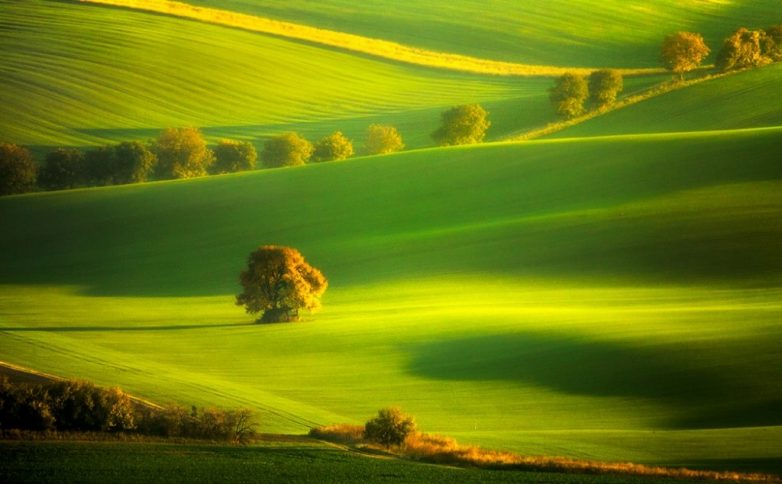 Бесконечные красочные поля Моравии. Удивительно, но этот пейзаж напоминает сотканную ковровую дорожку, а не дело матушки-природы. Наша планета не устает нас удивлять. (Фото: Pawel Uchorczak)