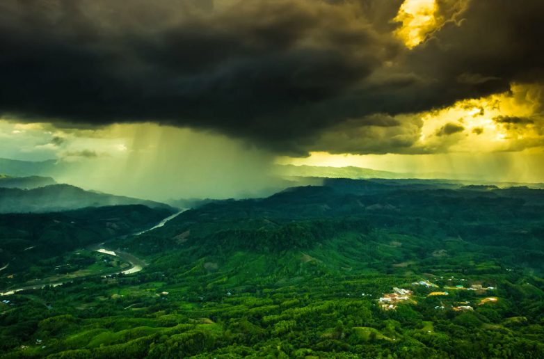 Дождь и солнце, запечатленные над округом Бандарбан