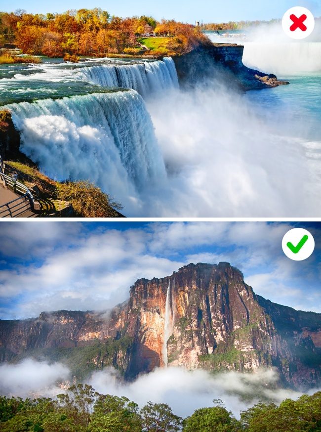 Собор Святого Петра, который все мы знаем как сердце Ватикана, многими ошибочно считается самым большим собором в мире. И хотя его размеры действительно впечатляют, ведь он может вместить 60 000 человек, но его конкурент — Базилика Пресвятой Девы Марии Мира в городе Ямусукро, Кот-д’Ивуар, вдвое больше. Она даже занесена в «Книгу рекордов Гиннесса» как самая большая церковь в мире.Ниагарский водопад — самый высокий в мире