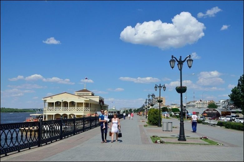 Кремль находится в 15 минутах ходьбы от набережной. Летом — это любимое место отдыха для горожан и гостей города. Здесь прохладнее, чем везде и очень весело. Набережная протяженная, можно гулять, кататься на гироскутерах, роликах, велосипедах — все это сдается здесь напрокат. Здесь же выступают музыканты, танцуют и вообще отдыхают стар и млад.