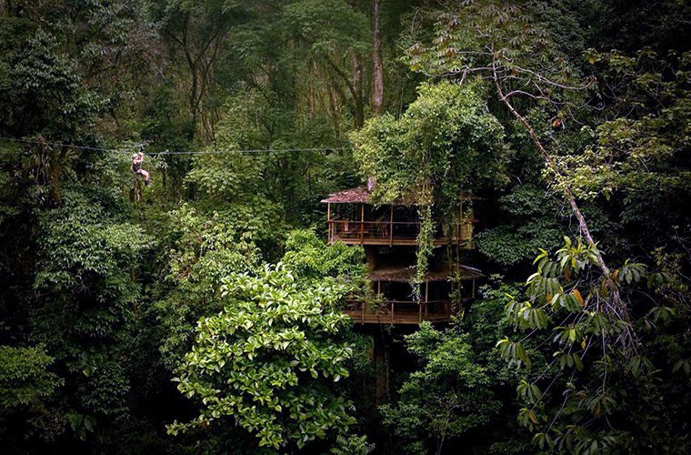 Finca Bellavista — это гестхаус из десяти домов на деревьях с определенными правилами и условиями проживания. Кабины построены прямо вокруг ствола дерева и находятся на расстоянии нескольких метров друг от друга. Лагерь расположен в полутора милях от цивилизации, а вокруг простираются сотни акров густых тропических лесов с их фантастической фауной.Изначально сообщество занималось спасением местной природы, сбором и переработкой дождевой воды, сохранением растительности. С 2006 года основатели комьюнити открыли в своем тропическом раю общественный центр, баню, кафе, столовую и провели Wi-Fi. Все бытовые отходы жильцы обязаны обрабатывать через биодигестор, а воду очищать самостоятельно. В качестве развлечений постояльцу предлагается прогулка по джунглям и купание в естественных реках. В некоторых домах полностью отсутствует электричество, соответственно, цена за ночлег там стартует со $115; за дом с проведенной электроэнергией придется заплатить $200-300 за ночь.