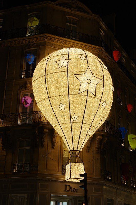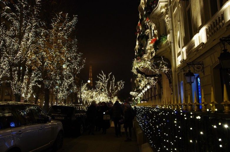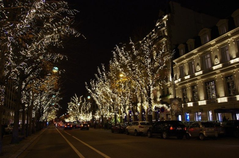 В этом году Париж богато украсили по сравнению с прошлым годом, 150 улиц. Новые лампочки теперь энергосберегающие, можно много накрутить. Экологи выступали против, мол, вредно для климата и птиц…