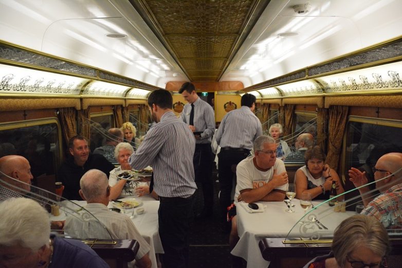 Здесь нас ждет ужин. Блюда, заранее приготовленные в поезде, выносятся на стоящие на улице столы. Холодное пиво и австралийские вина прекрасно дополняют вкусное горячее.