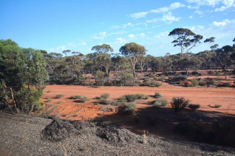 5 января 2018 г. Весь этот день мы пересекаем пустынную местность Налларбор, где практически нет ни дорог, ни жилья, ни воды. Здесь сухо и жарко. Недаром в Аделаиде нам прицепили вагон для автомобилей: многие пассажиры предпочитают перевозить свой автомобиль через Налларбор на поезде.