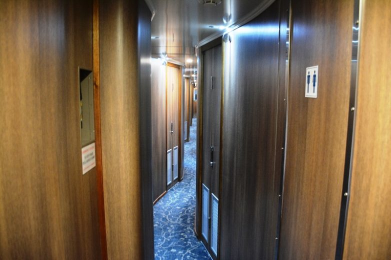 Пассажирские вагоны делятся на три класса. Самый высокий класс – «платиновый», с просторными двухместными купе со всеми удобствами. Затем идет «золотой двухместный» с небольшими двухъярусными купе, опять же со всеми удобствами. Наконец, «золотой одноместный» – с маленькими одноместными купе без удобств.
