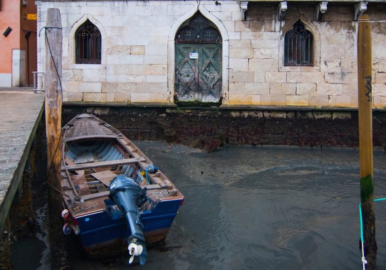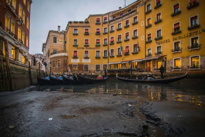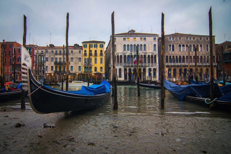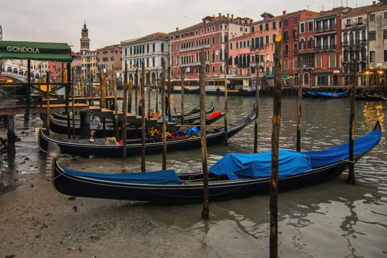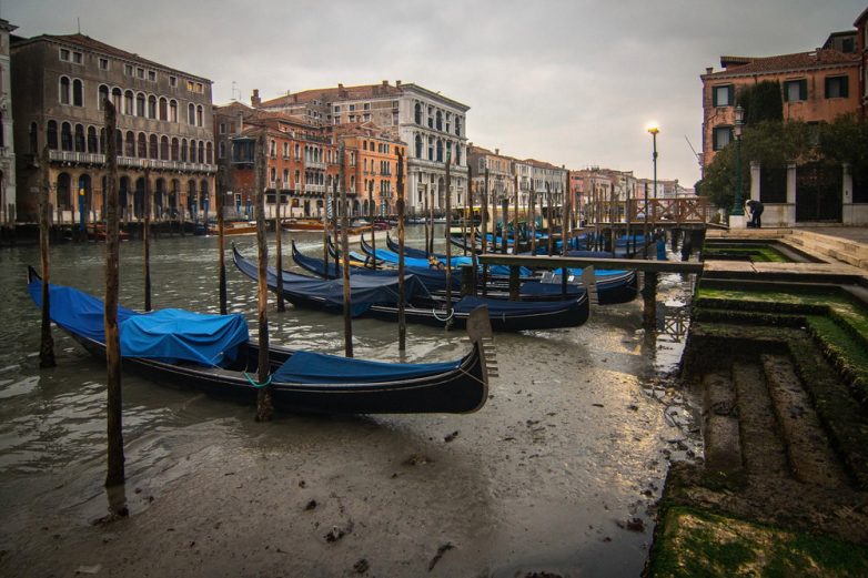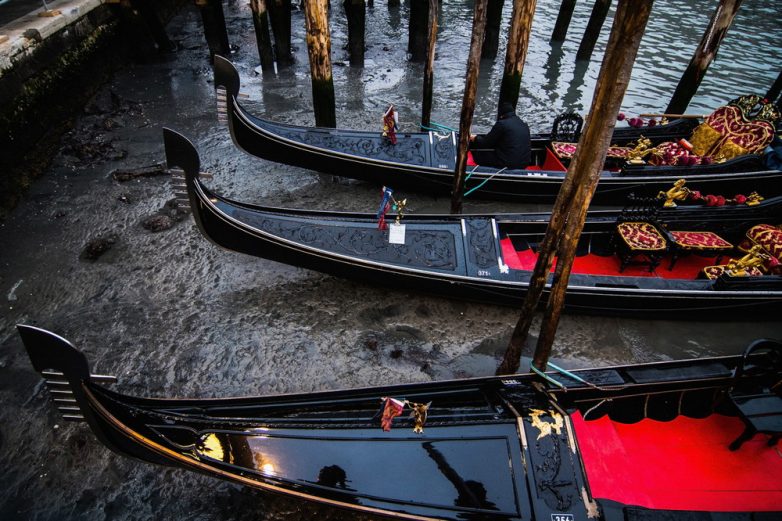 Гондолы и катера — основной вид транспорта и любимое развлечение для туристов в Венеции. Но в эти дни большинство лодок оказались на берегу в грязном иле. Подобное происходит уже несколько лет подряд, из-за сильного отлива уровень воды в каналах достигает рекордно низкой отметки.