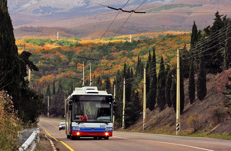Уже почти 60 лет пассажиры ездят по самому длинному в мире троллейбусному маршруту: разветвленная сеть соединяет между собой города Южного берега Крыма, а длина самой протяженной линии от аэропорта Симферополь до Ялты составляет 96 км. Дорога длится больше 3 часов, троллейбус преодолевает перевалы, спускается в долины, идет вдоль реки Салгир, останавливается у Никитского ботанического сада. За окном сменяют друг друга горы Чатыр-Даг, Демерджи и Аю-Даг, курортные поселки Партенит, Гурзуф и Массандра, а после Алушты открывается вид на море. Так что для туристов поездка на горном троллейбусе превращается в обзорную экскурсию, а местные жители просто добираются на нем на работу.