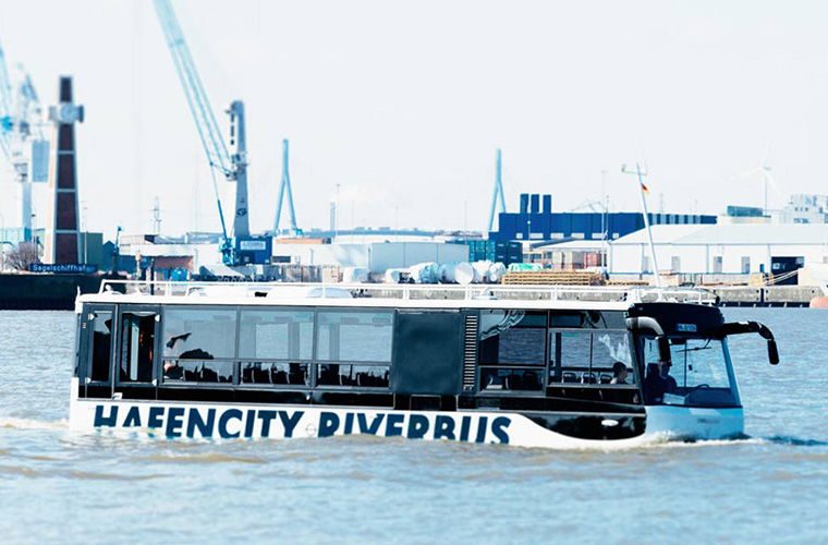 В 17 городах мира не нужно пересаживаться на речной трамвайчик, чтобы увидеть достопримечательности с воды — для этого есть водоплавающие туристические автобусы. А в Гамбурге такие рейсы стали регулярными, и чудо-амфибия пять раз в день перевозит не только гостей, но и жителей города. Пассажиры садятся в обыкновенный на первый взгляд автобус, который съезжает прямо в воду и курсирует по разветвленному устью Эльбы.