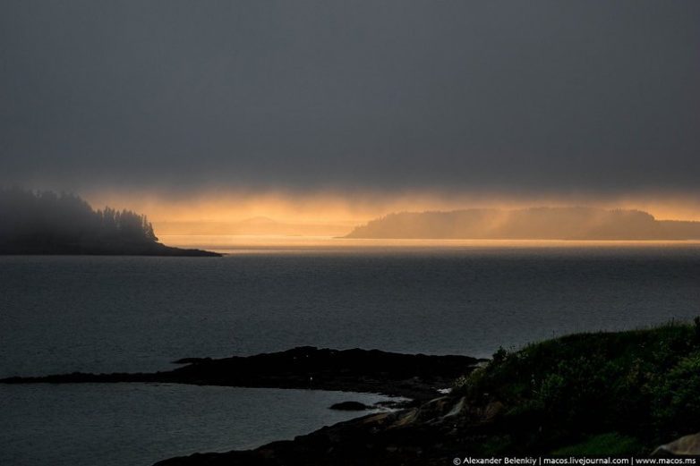 Америке с Канадой заборы не нужны, вода служит естественной преградой. Ведь с другой стороны всего лишь остров. Нет, островок на фотографии ещё Америка, клочок суши с остроносыми ёлками имеет смешное название Попес Фолли, а вон тот красный буй обозначает госграницу, всё что правее принадлежит уже другой стране.
