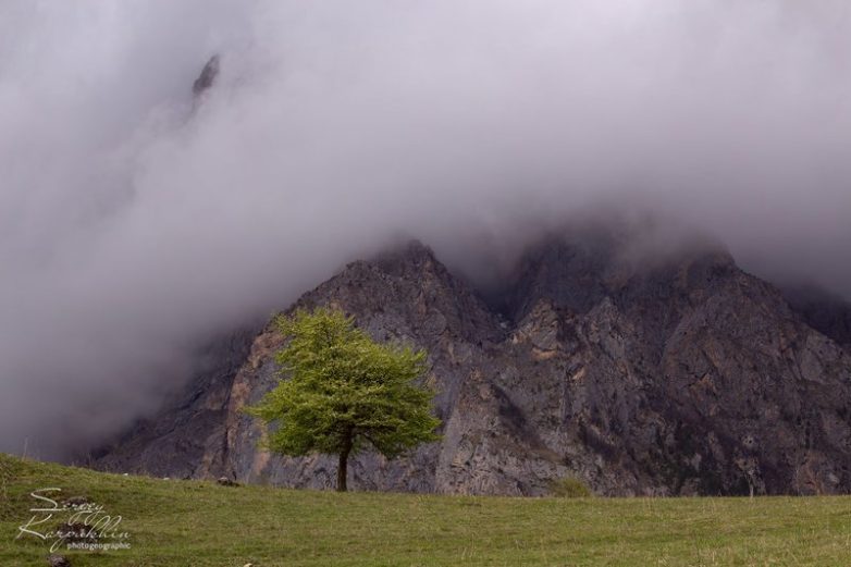 Заповедник Эрзи хотя и имеет такой высокий статус в системе ООПТ, но по факту это скорее просто природный парк, куда доступ практически никак не ограничен. Пока! Какое-то время мы потратили на поиски наиболее выгодных ракурсов в заповеднике Эрзи. И единодушно пришли к мнению, что наилучшая локация находится вот здесь, с видом на башенный комплекс Ний, а на дальнем плане неподражаемая скальная вершина Цейлам. В тот раз мы тут же и заночевали, неподалёку от точек съёмки, в лесочке.