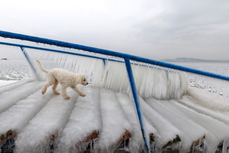 Ледяная скамейка под Будапештом, Венгрия, 26 февраля 2018. (Фото Gyorgy Varga):