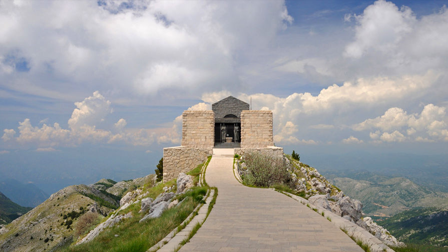 Впрочем, традиция создания мавзолеев на Балканах началась не с советской экспансии. Так, еще в середине XIX века на горе Ловчен был захоронен светский и духовный лидер Черногории Петр II Негош, он отдал соответствующее распоряжение за шесть лет до смерти. Однако выполнить последнюю волю верховного правителя удалось не сразу: подданные опасались, что на могилу нападет турецкий паша Скадар (Шкодер), так что сначала захоронили правителя в Цетинском монастыре, рядом с могилой его предшественника Петра I Петровича. Спустя четыре года после смерти останки Петра II все же перенесли на гору. Во время Первой мировой войны пришлось организовать еще один «переезд» в монастырь, потому что часовню начала бомбить австро-венгерская армия — но в 1925 прах монарха вернули на гору. В апреле 1942 года итальянские войска снова повредили часовню, но на сей раз саркофаг решено было не переносить, а построить вокруг него новое здание мавзолея. Сейчас ворота сооружения, крыша которого покрыта золотом, охраняют статуи двух черногорок. Внутри строит 28-тонная статуя Петра II Петровича-Негоша. За мавзолеем находится смотровая площадка, откуда открывается вид на всю Черногорию.
