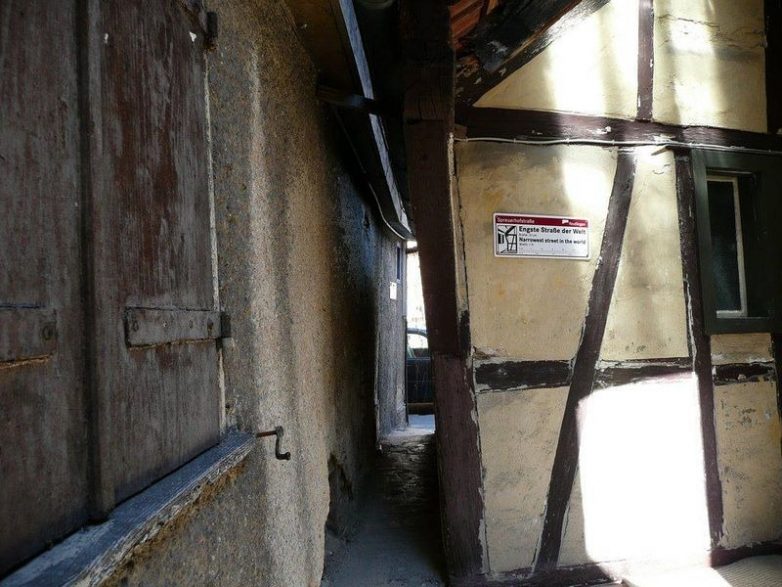 В какой момент улица перестает быть улицей? Согласно Книге рекордов Гиннеса, самая узкая улица в мире расположена в старом городе Ройтлинген, в Германии. Это фактически узкая аллея, называемая Spreuerhofstraße, между двумя близко расположенными домами.
